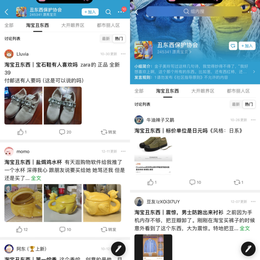 而在豆瓣“丑东西保护协会”小组秉承“东西也想要有人爱,从暗淡中发现闪光点”的建组理念,倡导“丑东西聚集在一起,快乐欢愉,不用在乎别人的眼光”,致力于发现生活中的丑东西,给予理解宽容的目光,这与淘宝丑东西的评选理念不谋而合。剁椒了解到,目前豆瓣“丑东西保护协会”小组已经聚集了超过24万丑东西爱好者。