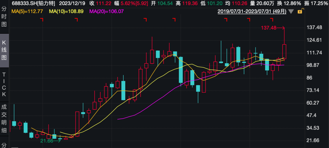 不过投资者对于葛卫东的进入反应平淡,公告后的首个交易日,12月18日,铂力特报收113.59元/股,总市值182.02亿元。