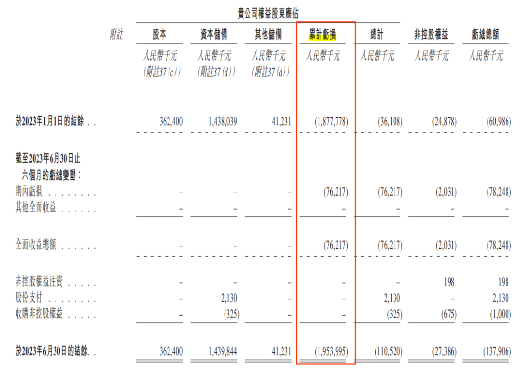 长年累月的亏损,将猪八戒的亏损总额推至高位。截至2023年6月30日,公司权益股东应占累计亏损已经达到19.54亿元。