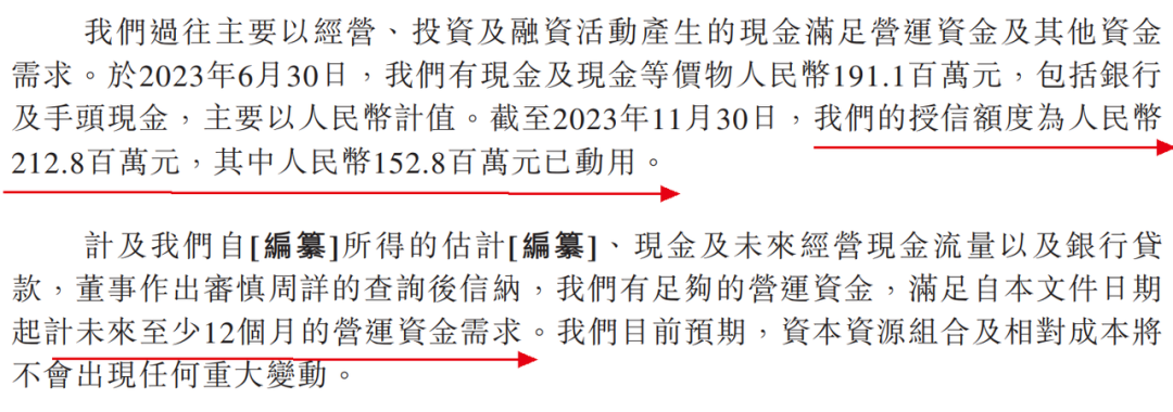 截至2023年11月30日,猪八戒的现金及现金等价物有1.61亿元。按照猪八戒的说法,营运资金能够满足自本文件日期起计未来至少12个月的营运资金需求。