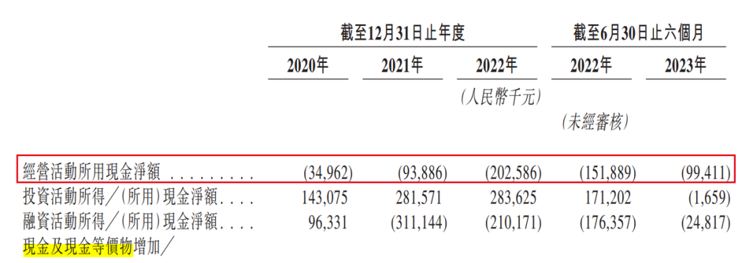 长期以来,猪八戒欠缺“造血能力”,经营现金流一直为负。2020年-2023年6月,其经营现金流净额分别为-3496.2万元、-9388.6万元、-2.03亿元、-9941.1万元。