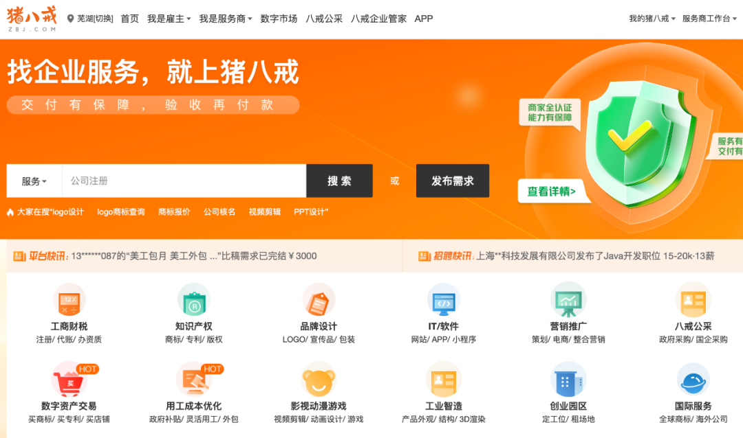恰逢东风,猪八戒便乘风而起。天眼查显示,猪八戒共获得8轮融资,投资方包括IDG资本、易一天使、重庆文投集团等。在2015年的C轮融资时,猪八戒的估值已经飙涨到110亿元。