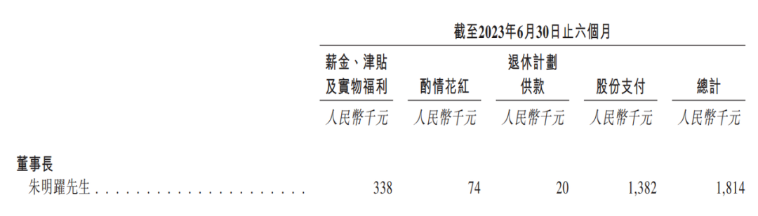 招股书显示,2020年-2023年6月,朱明跃获得报酬分别为5418.4万元、94.6万元、3173.8万元和181.4万元。短短3年半时间,朱明跃获得了近9000万元的收入。