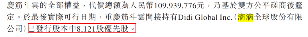 于2023年12月6日,重庆筋斗云仅间接持有滴滴8121股优先股,若以此计算,滴滴每股的价格超过万元。