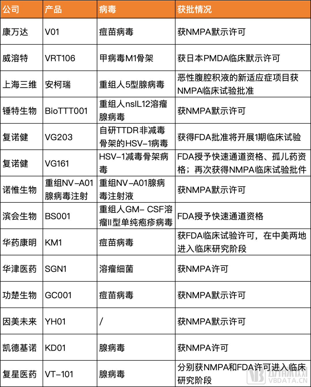 与此同时,大洋彼岸的中国在溶瘤病毒领域百花齐放,国内布局的企业近50家,今年收获颇丰。