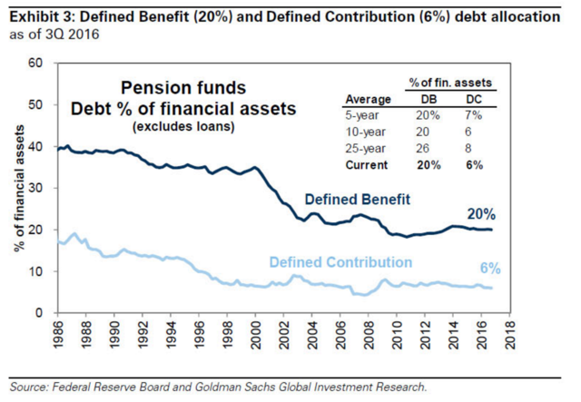 养老基金的债券配置比率:接近过去30年最低水平