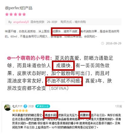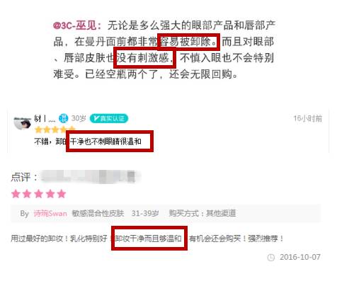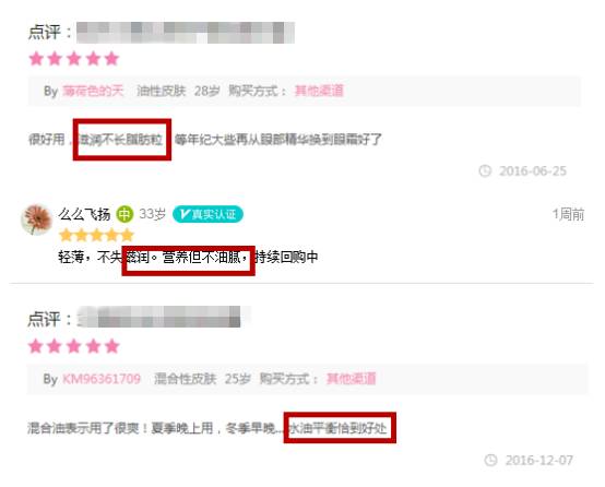 相对来说,化妆水、粉底液、眼影、口红等产品,大多是针对不同肤质、妆效进行研发的,因此消费者的需求也各有不同,呈现多元化的特点。不过,从五大榜单上消费者的评论来看,影响他们购买决策的因素不外乎以下几个方面: