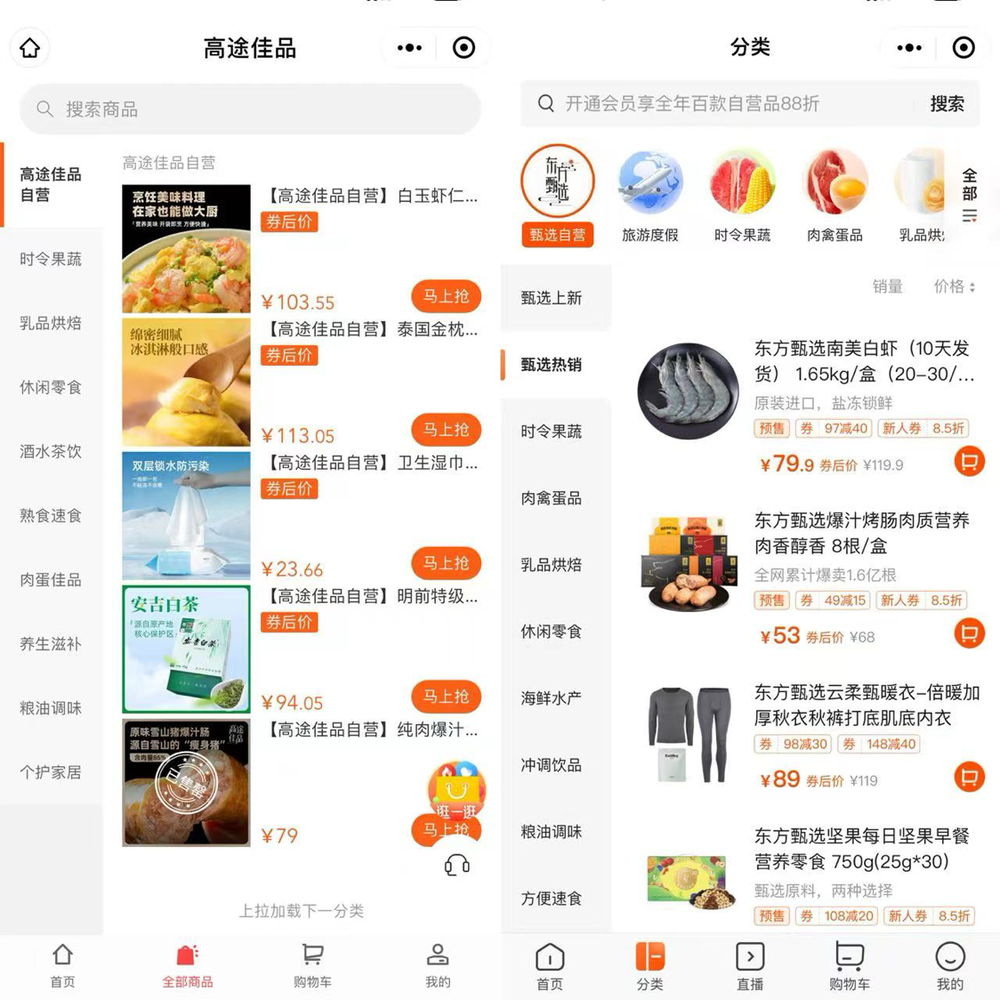 早在2022年底,高途入局直播带货时,就曾将“高途好物”更名为与东方甄选更为接近的“高途佳品”,直播间内布置陈设也几乎1:1还原了东方甄选直播间,同为“知识带货”直播间,连主播风格都十分接近,在随后的不断摸中,高途佳品甚至将直播间内选品都圈定在主打生鲜、农产品、零食为主,兼顾家清、酒水、速食、养生等多品类,向东方甄选主账号不断靠近。