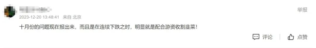 这一消息也引发了部分股民的不满。此前,中百集团股价刚经历大起大落,10月24日开始的35个交易日涨了32.45%,此后至今7个交易日累计跌了15.06%。股民认为,十月份的问题放到现在才公告,是配合游资“割韭菜”。