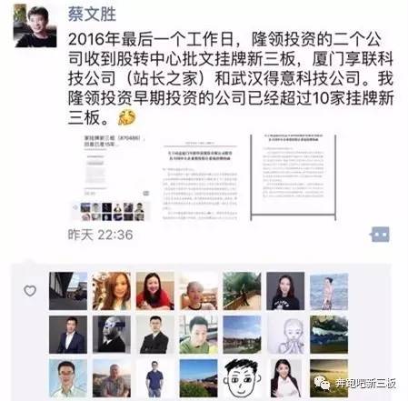12月15日美图港股上市,成为了腾讯之后,港股迎来的第二大互联网企业。与此同时,作为投资人,草根英雄的路途并没有止步。半个月之后,蔡文胜旗下隆领投资早期所投的两个项目享联科技(870486.OC)和得意生活(870584.OC)又挂牌新三板,新的征途才刚刚开始!(奔跑吧新三板:bpbxsb)