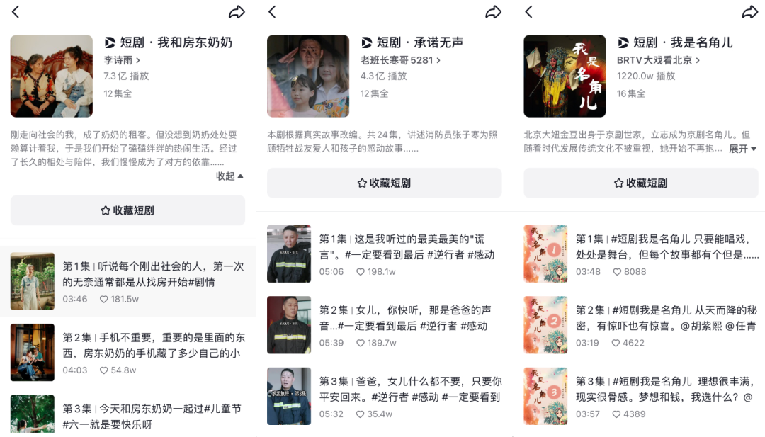 中国网络视听协会副秘书长周结也认为,此前一批批精品优质的微短剧陆续登上各大平台,受到用户广泛好评,微短剧已经成为一股视听新势力。此次抖音与媒体机构合作是共长补短,互惠共赢,也是微短剧“内容提质升级的创新合作”。