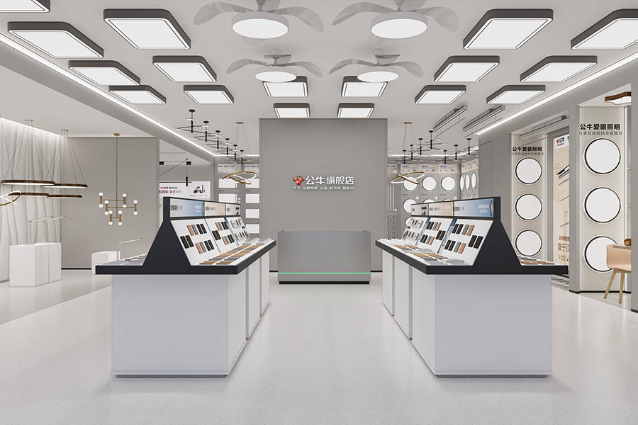 据公牛集团装饰渠道营销市场部总监赵君龙介绍,旗舰店的设计符合当下主流审美,设计整体简约、时尚、高端。考虑到全屋安全用电场景,门店还进行了场景化、模块化和标准化的设计,以提升消费者的购物体验。在品类覆盖上,旗舰店集成展示墙壁开关、爱眼照明、智控无主灯、生活电器、轨道插、台灯、智能门锁七大品类,并在店内配有灯饰展示套间和无主灯体验套间,通过智能开关联动,增强消费者多品类使用场景体验。