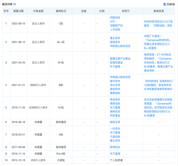此后,从2021年1月的B1轮融资,直到2022年9月的C1轮融资,欢创科技共计完成了4轮融资,先后获同歌创投、HTC旗下产业基金、深圳市国资委旗下深智城集团、基石资本、前海母基金、中航国际等知名机构投资。