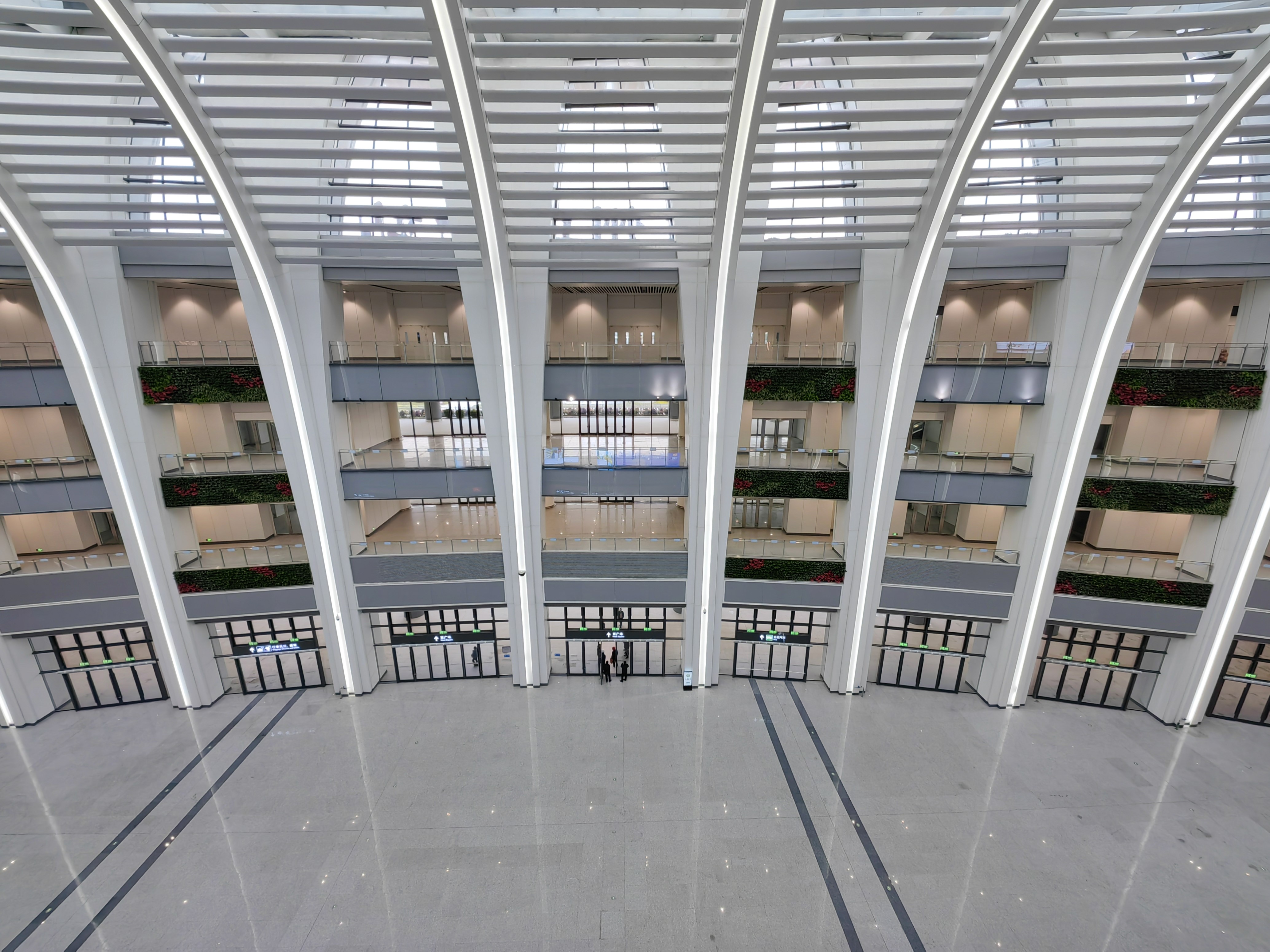 “广州白云站对标的是新加坡国际机场,借鉴了光谷空间、室内绿植、节能减排等。”中铁建工白云站项目办公室的王天水告诉界面新闻。根据设想,未来周围物业建成后,市民可以通过呼吸广场去往酒店、写字楼和公寓;商务旅客在上盖的写字楼开完会,10分钟后就能抵达车站坐车。