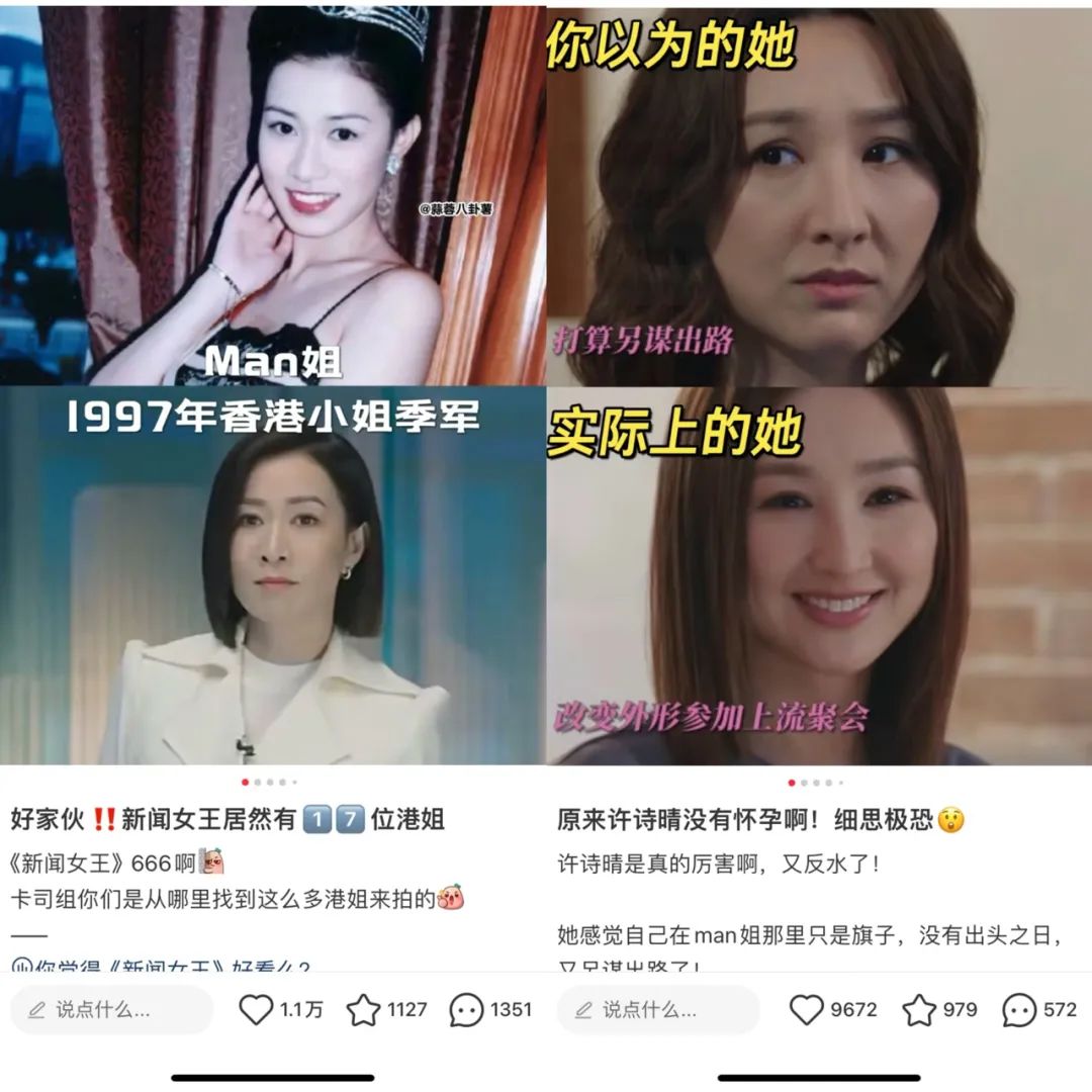 新的标志性节点是,《新闻女王》大火后,TVB开始成为小红书心得关键词,比如高海宁的小红书账号活跃度明显上升,同剧组的演员何依婷、李施嬅账号涨粉迅速。“许诗晴同款穿搭”“高海宁loopy表情包”等网友围绕其剧情和人物的进行的二创层出不穷。