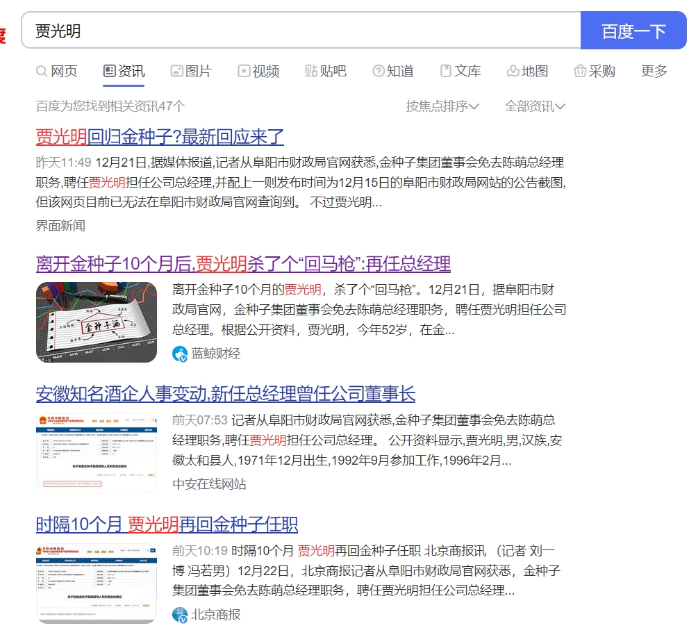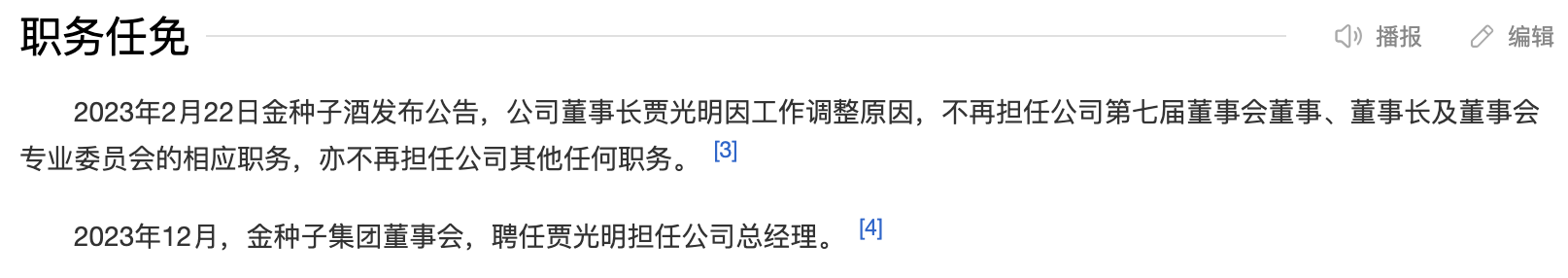 《天下财道》查询百度百科显示,贾光明的确已被任命为金种子集团公司总经理,任期起始于2023年12月。