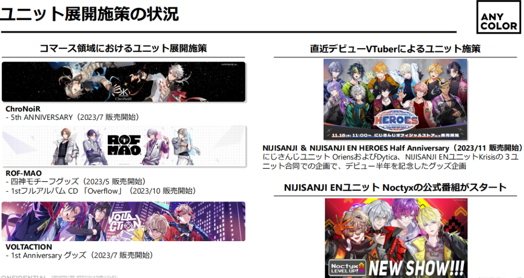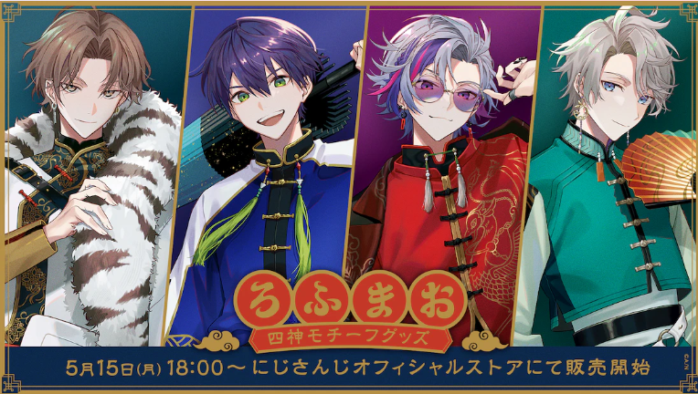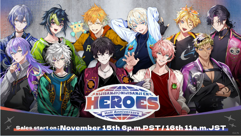 组合Oriens和Dytica以及英语组合Krisis,共计11名男性VTuber强强联手推出了出道半年纪念商品“NIJISANJI & NIJISANJI EN HEROES Half Anniversary”,包括立牌、随机小卡、徽章、角色指偶、毛巾等等,发售同时还参加了由animate主办的大型女性向活动“偶像梦幻祭AGF2023”。