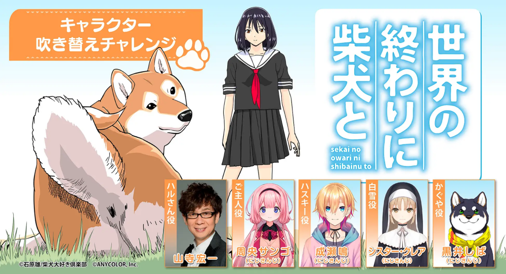 7月在YouTube播出的动画《世界末日与柴犬同行》中,周央珊瑚与声优山寺宏一共同担任W主演配音。