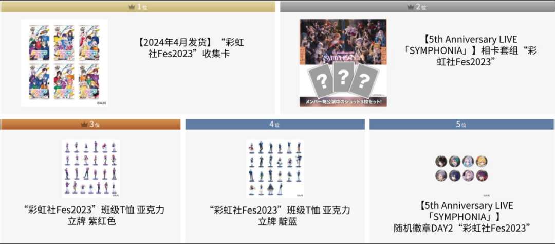 彩虹社官方商城实体商品销售排行榜(截至2023.12.25)