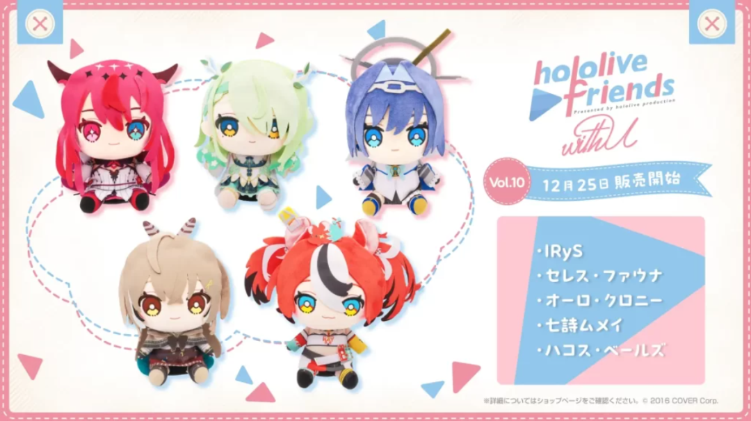 譬如,着力宣传去年12月推出的首个官方品牌商品“hololive friends with u”,产品为虚拟主播形象的布偶,已经成为主打的全年销售类固定商品,目前已发售10弹超50名角色布偶,电商渠道累计售出近十万。