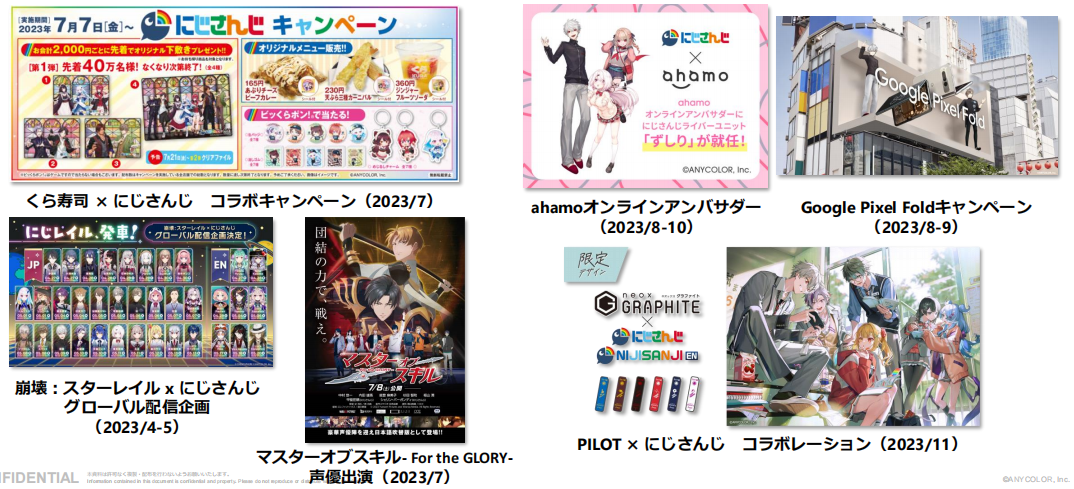 随着旗下VTuber知名度和IP商业价值不断提高,IP授权合作业务得以不断扩大发展,彩虹社的对外合作不再局限于与其他品牌的常规联名,还积极寻求电视、电影、流媒体等方面的合作,收获更多曝光的同时提升IP价值,打开粉丝圈层。