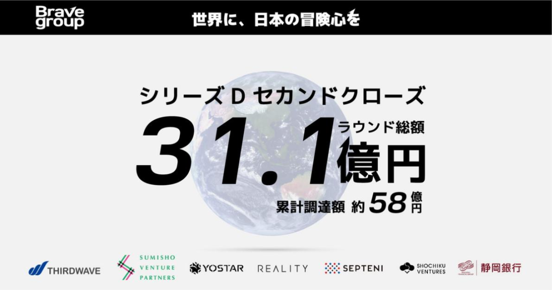 从2017年10月开始创业的Brave group,今年进行了两轮D轮融资,共筹集资金31.1亿日元,累计筹措金额达到大约58亿日元。