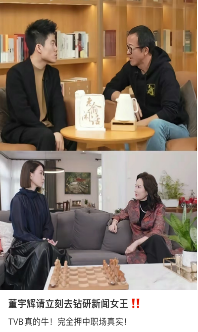 东方甄选“小作文”事件之后,许多网友在社交平台将这部当代职场宫斗剧,称为“预言之作”。剧中,电视台台柱Man姐与电视台董事长谈心时,在沙发上面对而坐,与董宇辉和俞敏洪上直播间对话时的画面高度一致。