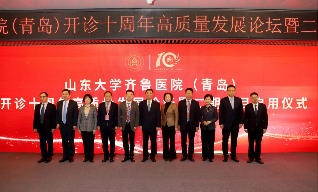 陈玉国向前来参会的领导、专家及相关单位代表表示欢迎和感谢。2013年,齐鲁医院着眼“健康山东”战略全局,响应青岛市委市政府实现百姓“病有良医”的号召,打造齐鲁医院济青“双核”发展格局,青岛院区应运而生。陈玉国表示,在山东大学的领导下,作为医院“多院区一体化”发展格局的重要一极,在医院整体战略部署下,青岛院区各项事业呈现出强劲的发展势头、取得了优异的发展成绩,服务水平得到患者和社会各界的一致好评。青岛院区二期项目是医院创建国家医学中心、更好服务“健康青岛”“健康山东”战略的重要一环。希望青岛院区以开诊十周年和二期项目启用为契机,以公立医院高质量发展为目标,在医疗服务、教育教学、科研创新、学科建设、人才培养、医院管理等各方面持续发力,实现“量”与“质”的双提升。山东大学齐鲁医院将继续履行国家区域医疗中心建设的使命与责任,积极探索完善“多院区一体化”管理模式,进一步推动中心院区与青岛院区融合发展。