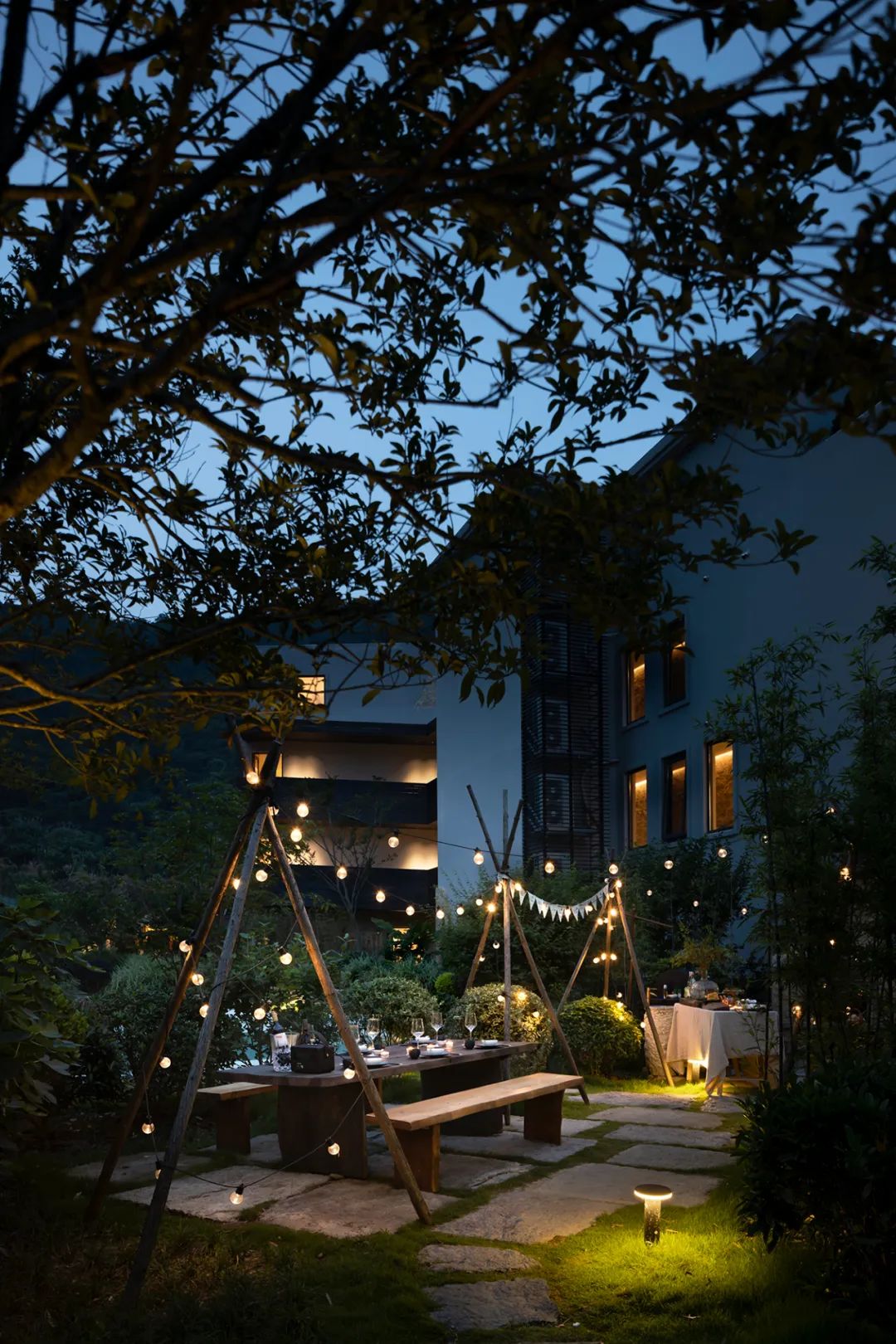 民宿到处摆满了高大的绿植,文艺氛围拉满。院后还有办篝火晚会和烧烤的场地和工具,只要有心也有伴,一宵欢聚热闹分分钟就能实现!