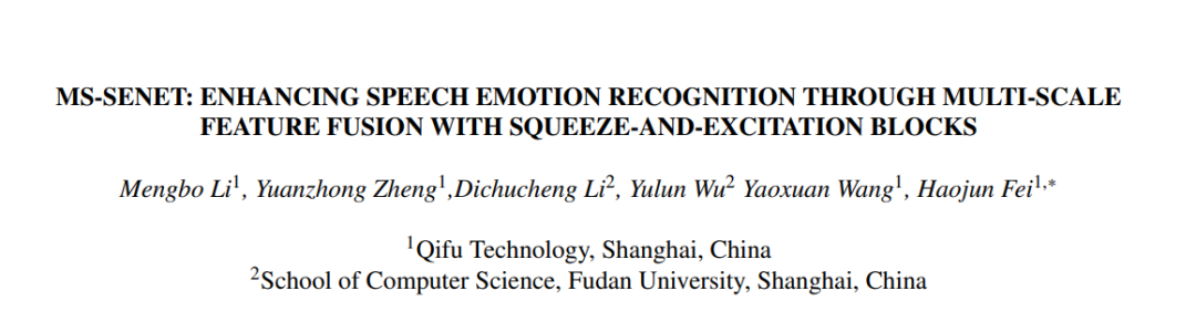 近日,2024年IEEE声学、语音与信号处理国际会议ICASSP 2024(2024 IEEE International Conference on Acoustics, Speech, and Signal Processing)宣布录用奇富科技关于语音情感计算的最新研究成果论文“MS-SENet: Enhancing Speech Emotion Recognition Through Multi-scale Feature Fusion With Squeeze-and-excitation Blocks”。ICASSP上的成功发表是奇富科技在全球科技舞台上又一次的闪耀,也是对团队科研能力和创新实力的最佳证明。