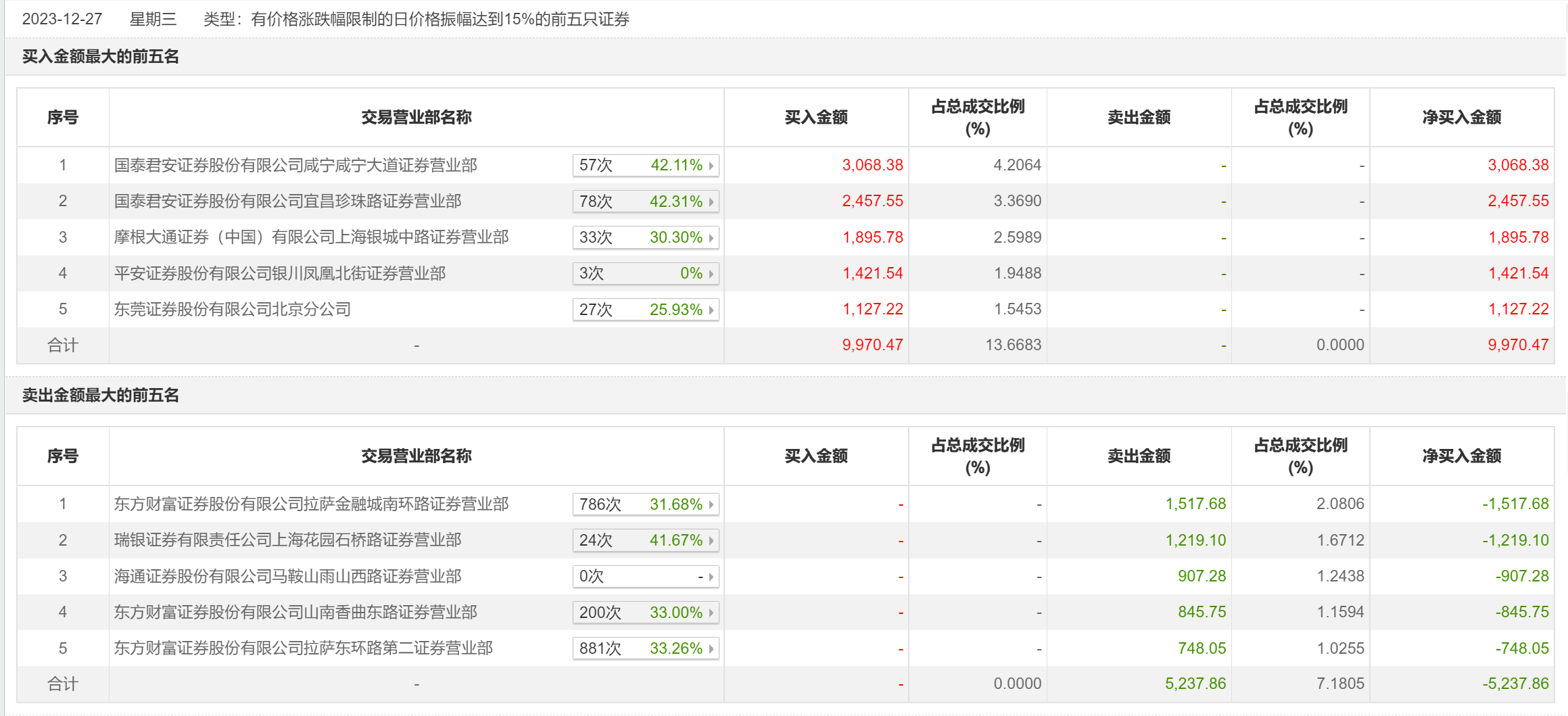 具体来看,知名游资现身龙虎榜,著名刺客(东莞证券股份有限公司北京分公司)净买入1127.22万元。此外,国泰君安证券咸宁咸宁大道证券营业部、国泰君安证券宜昌珍珠路证券营业部分别买入3068.38万元、2457.55万元;东方财富证券拉萨金融城南环路证券营业部、瑞银证券上海花园石桥路证券营业部分别卖出1517.68万元、1219.10万元。