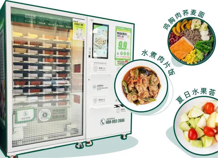 沙拉食刻是一家全供应链科技型餐饮企业,采用“标准化规模化工业化生产+冷链配送+智能机器无人售卖”的商业模式,为消费者提供即买即得的便捷就餐服务。目前沙拉食刻服务已覆盖大湾区重点城市,未来将登陆长三角,逐步覆盖全国。(品牌官方)