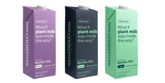 主打可持续食品品牌WhatIF Foods(新加坡初创食品公司NamZ旗下品牌)推出首款以班巴拉豆为原料的植物奶BamNut Milk,其将广告语“What if plant milk was made this way?”直接印在植物奶包装上。