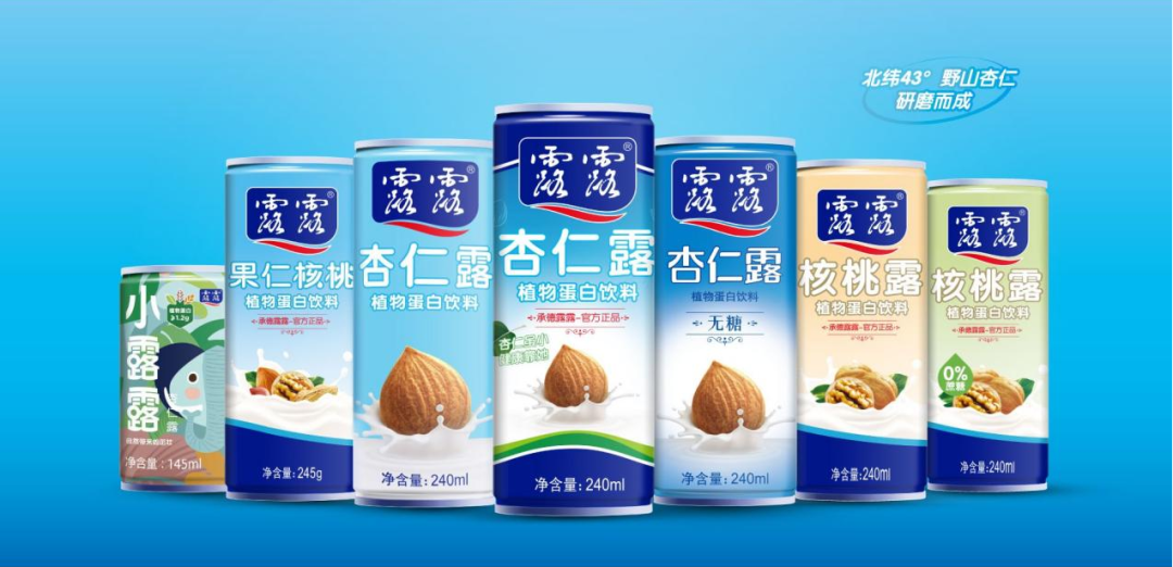 2023年12月12日,承德露露官宣推出两款植物蛋白饮料新品,包括巴旦木奶(原味和巧克力味)以及“轻林漫步”杏仁茶饮。