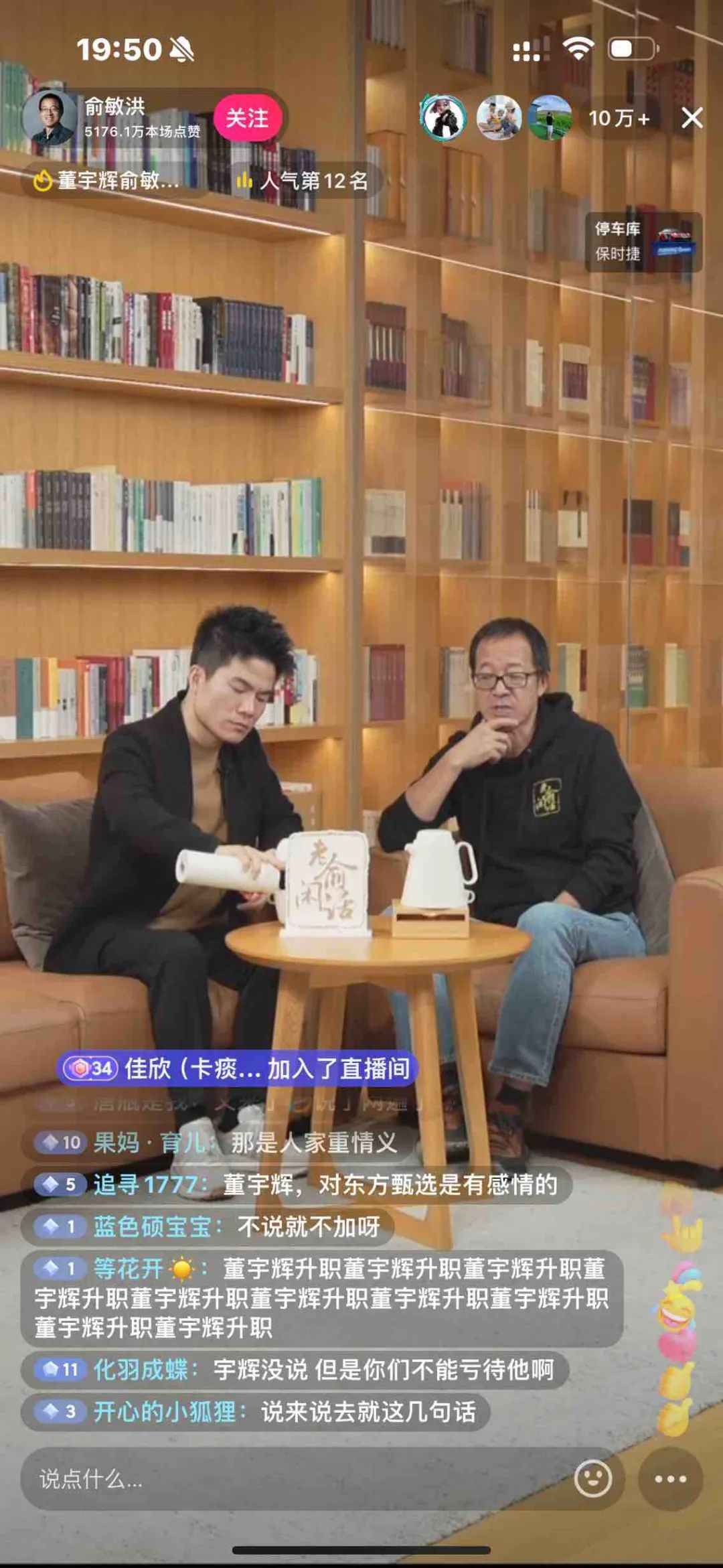 时间来到本周六,白天孙东旭被罢免了CEO,当天晚上19点10分,董宇辉就来到了俞敏洪直播间合体直播。