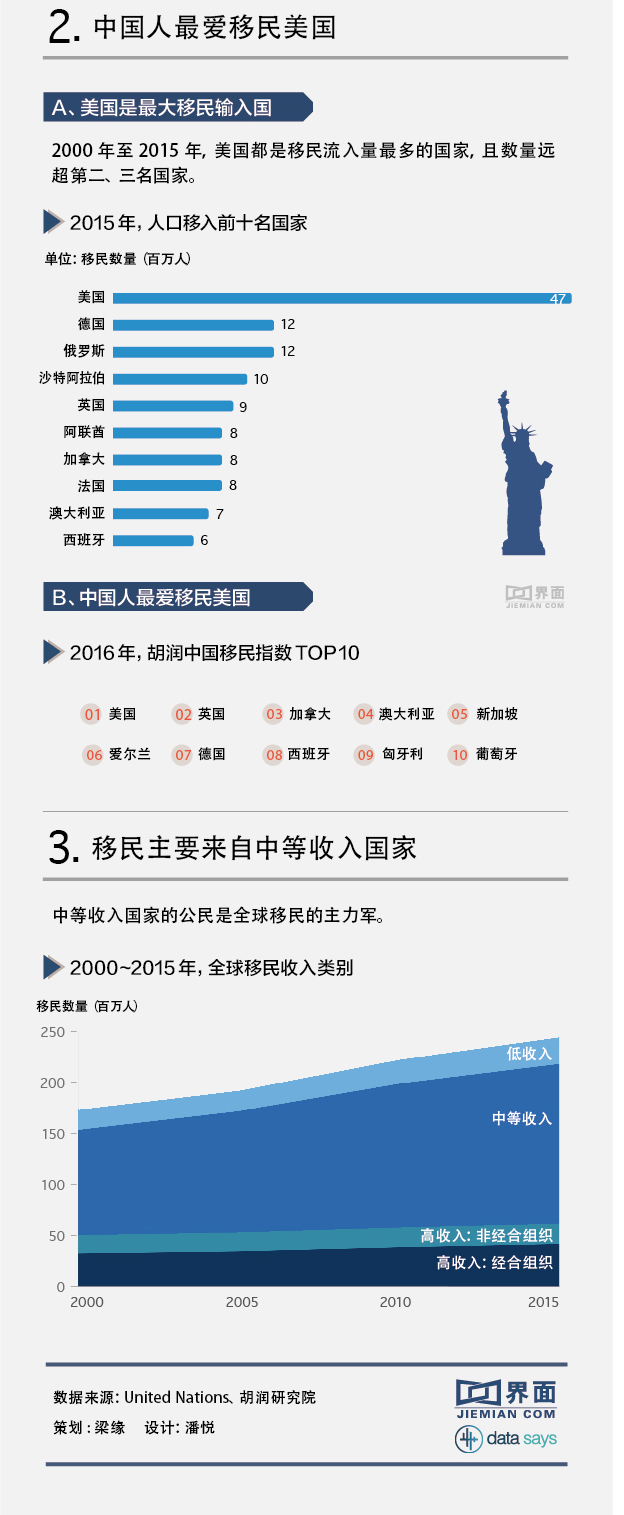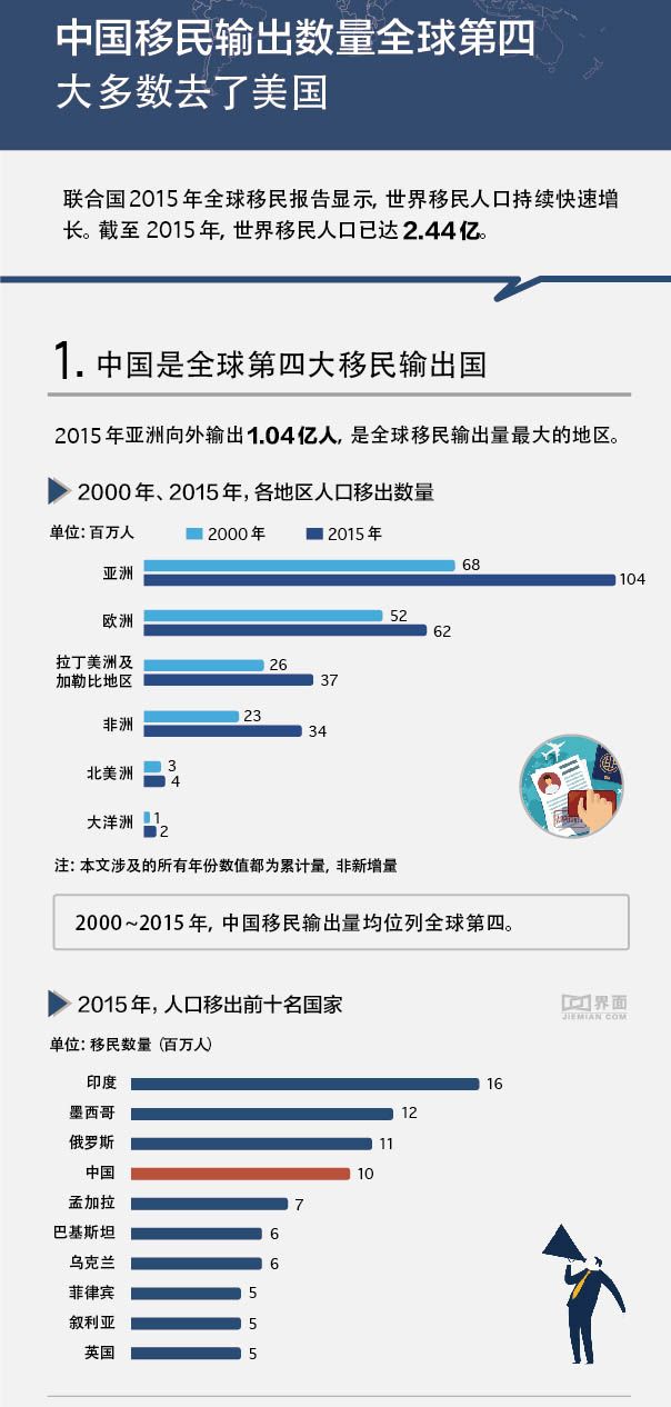 【图解】中国移民输出数量全球第四 大多数去了美国