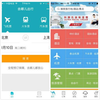 但去哪儿小程序提供的应用场景恰恰是张小龙拿来举例的两个场景之一。和去哪儿类似,携程在小程序中也设置了机票、火车票和汽车票,除此之外还加入了酒店。