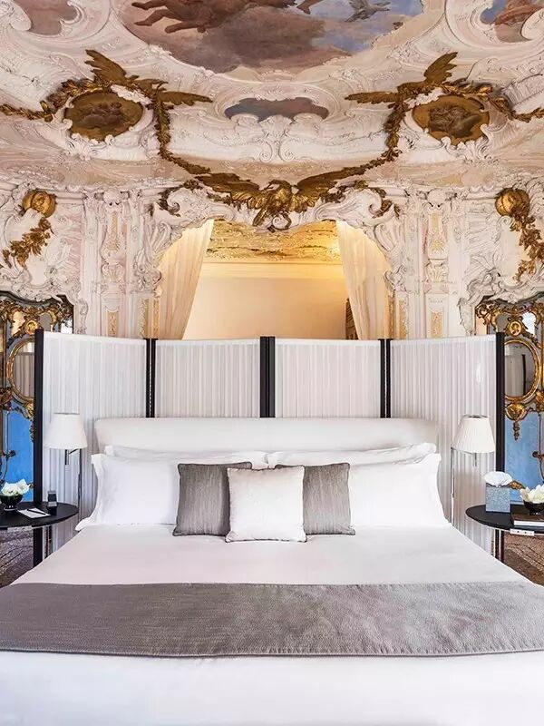 就这样,这两栋五层楼高的古建筑终于华丽转身,变成有着24间豪华套房的安缦威尼斯。也令我们终于有机会,能躺在AlcovaTiepolo套房的床上,伴着头顶上Giovanni Battista Tiepolo的18世纪画作,沉沉睡去。