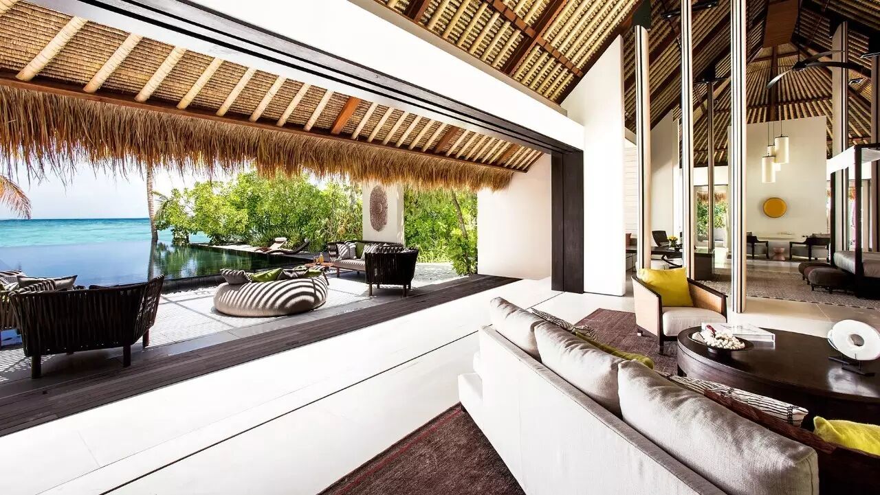 虽然他也大量使用印度洋的天然材料:茅草、藤条、原木,贝壳等作为设计元素,但不知为何,它们统统“沦落”成为视线配角,你反而会被那些完全不属于马尔代夫的钢筋、皮革、玻璃所吸引。