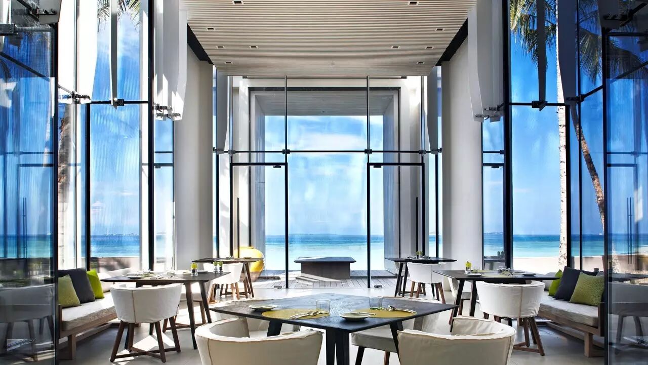 和其他马尔代夫酒店过度强调原始、隐世、热带风情的设计完全不同,Gathy把白马庄园打造的非常摩登现代,有种纽约范儿。