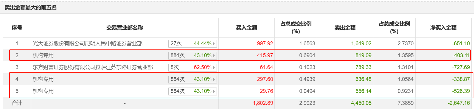 12月27日,三个机构席位占据卖出席位的前5强。3个机构专用席位合计净卖出1268万元。