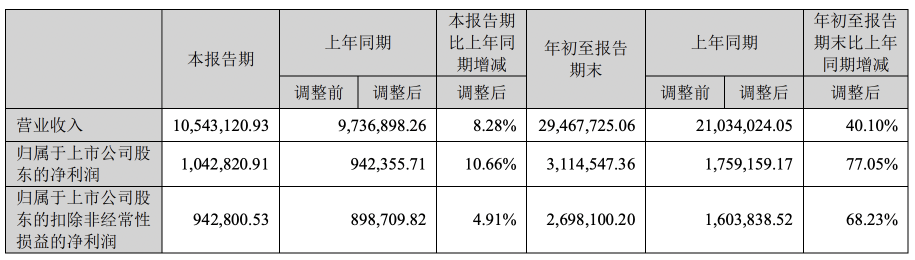 根据宁德时代在今年第三季度发布的财报,宁德时代第三季度营业总收入 1054.31 亿元,同比增长 8.28%,归母净利润为 104.28 亿元,同比增长 10.66%。很明显,宁德时代的总营收在已经显著放缓,另外,与第二季度的 108.95 亿归母净利润相比,宁德时代在第三季度的净利润出现了 4.2% 的环比下滑。