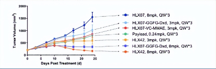 第二,战斗力优于传统的ADC药物。在NCI-H1993模型中,每周以8 mg/kg给药HLX42 三次导致91.5%的TGI,而抗EGFR-GGFG-Dxd诱导的TGI为79.8%。