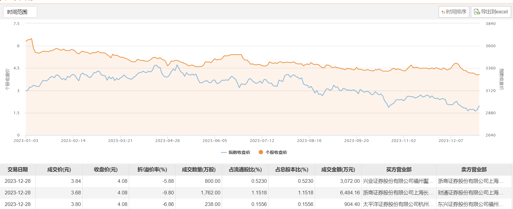 12月28日,龙元建设今日大宗交易成交2800万股,成交额1.05亿元,占当日总成交额的45.16%,成交均价3.74元,较市场收盘价折价8.33%,其中最高成交价3.84元,最低成交价3.68元。
