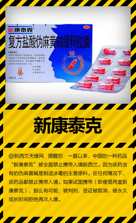中国药品“新康泰克”被全面禁止携带进入新西兰。