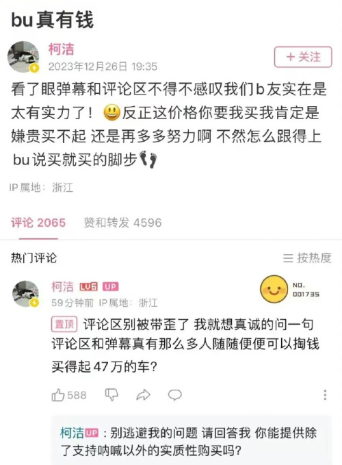 随后,众多网友的评论区展开讨论,柯洁也补充说,评论区被带歪了。“我只是想真诚问一句真的有人可以随随便便掏47万买车吗?”