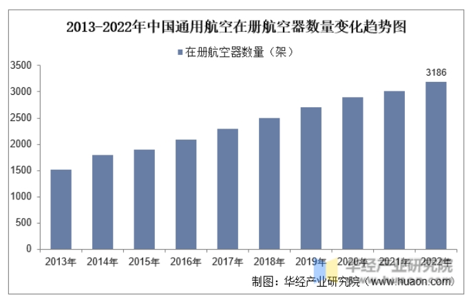 据华经产业研究院数据,2013年以来,我国通用航空在册航空器数量稳步增加, 2022年底,通用航空在册航空器总数达到3186架。长城证券数据显示,2020 年,美国通用航空器数量27.1万,其中仅通用航空飞机就有1555架。英、德、法、巴西通用航空器数量均超过2万架。我国的通用航空器在数量上还有很大差距。