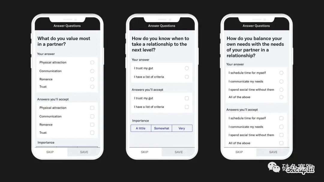 同在Match Group旗下的OKCupid与Tinder喜欢开门见山的风格不同,更关注让用户进行“灵魂”交流,因此用户创建档案时要填写较为复杂的个人简介问题,这能够帮助算法决定匹配对象是否在三观上也契合。就在今年,OKCupid测试了用ChatGPT来生成这些匹配问题,灵感其实来源于对用户的一项调查,用户需要回答他们认为ChatGPT能拯救如今的约会市场还是这项技术过于“黑镜”,结果显示选择更支持AI的用户比选择后者的匹配成功几率高出了40%。