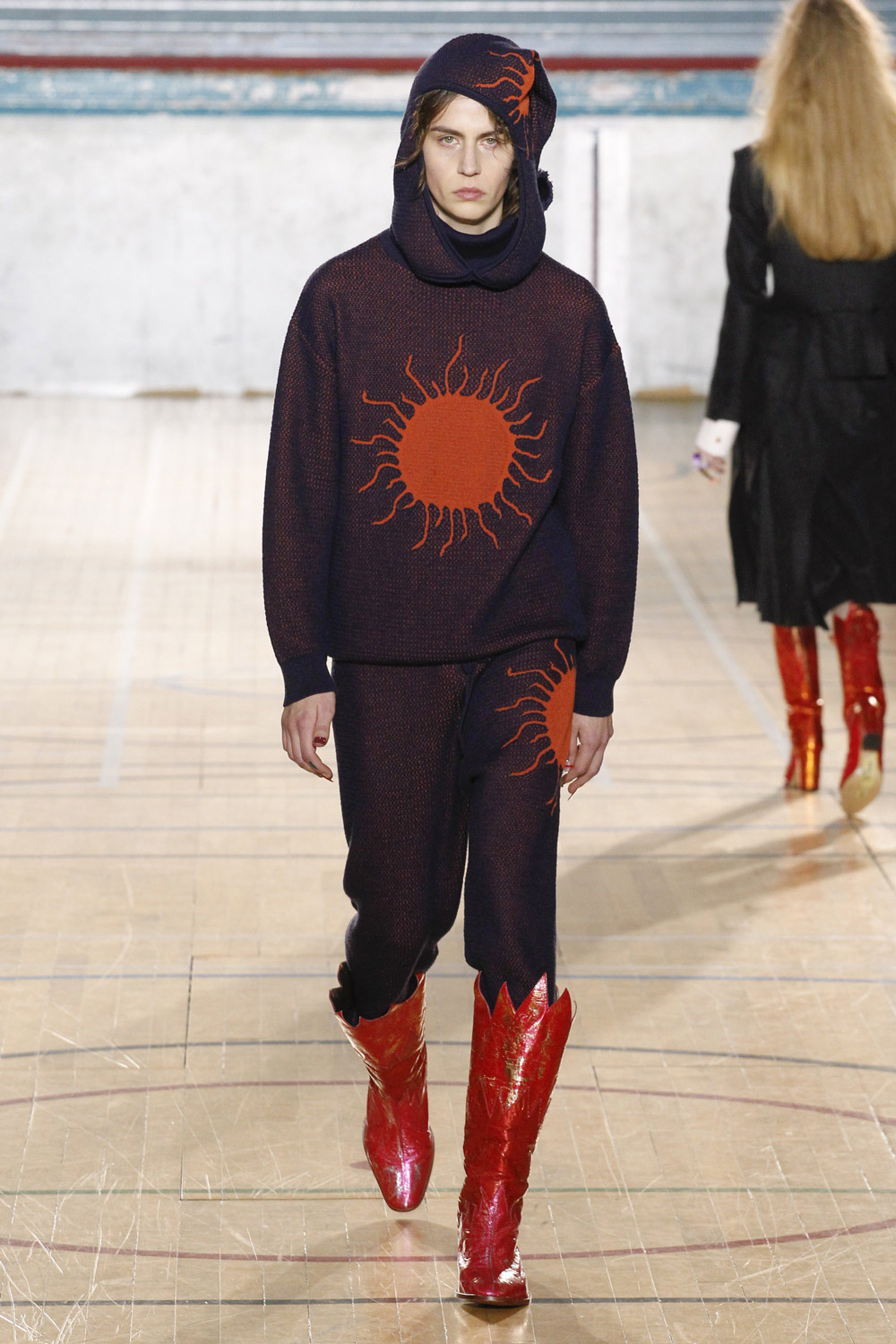 相应地,合并后的男女装在风格上也更加趋近,体现了性别模糊的主题。相比较以往黑色风为主,这一季的色彩更加明亮丰富,设计上偏爱多层次的搭配。
