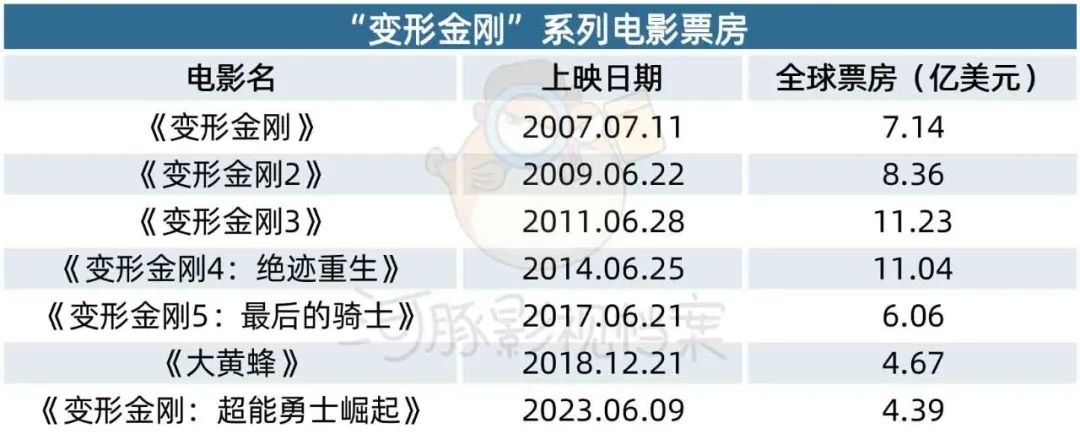 不过这只是横向对比,纵向来看,《变形金刚:超能勇士崛起》是变形金刚真人系列电影中票房最差的一部,甚至不如当年大扑的《大黄蜂》。
